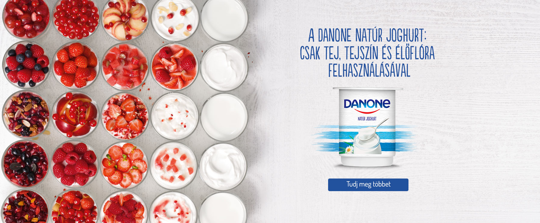 Napjaink sok és sokféle Danone joghurtja, kefirje és ivójoghurtja között mindenki megtalálja az aktuális kedvencét - akár útnak indul éppen, akár dolgozik vagy iskolába jár, akár a natúr, akár az édesebb, gyümölcsös ízek kedvelője!